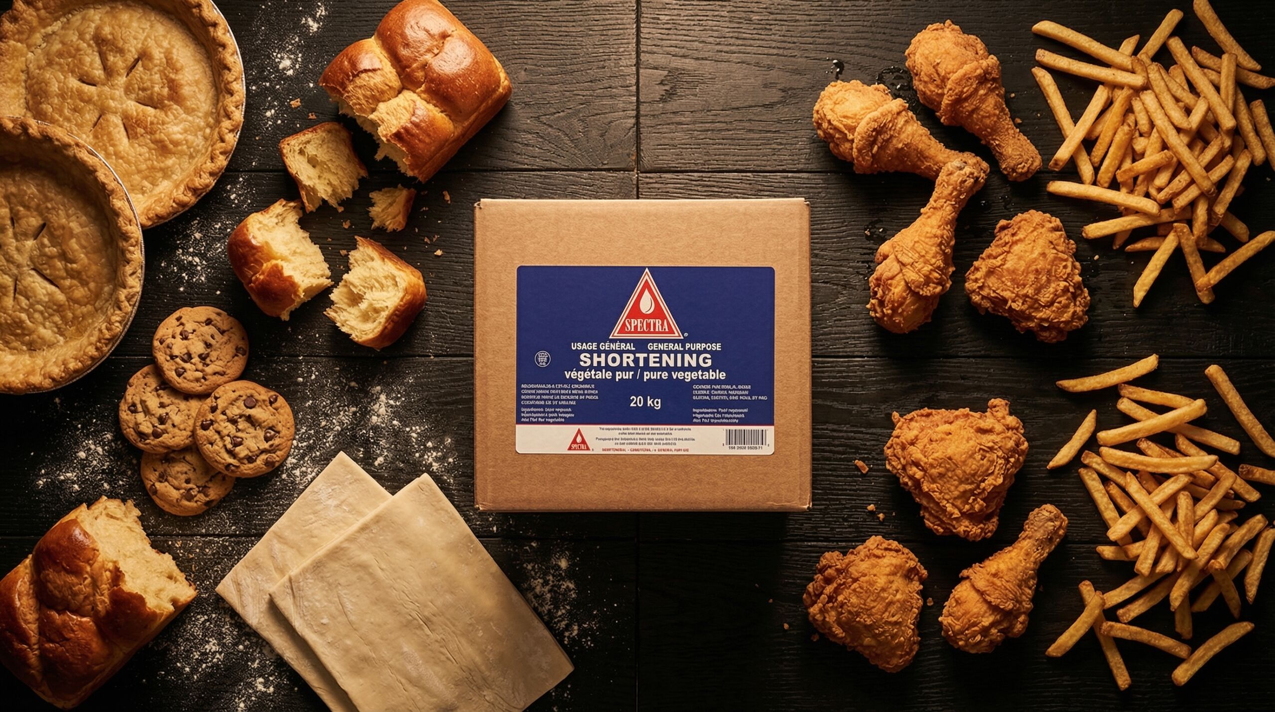 Spectra® All Purpose Vegetable Shortening does exactly what its name says. Its smooth, neutral character makes it ideal for pastries, cookies, pies, cakes, and bread. Rich-tasting and consistent, while also performing reliably in deep frying and griddle work. A single product that covers a broad range of kitchen needs.